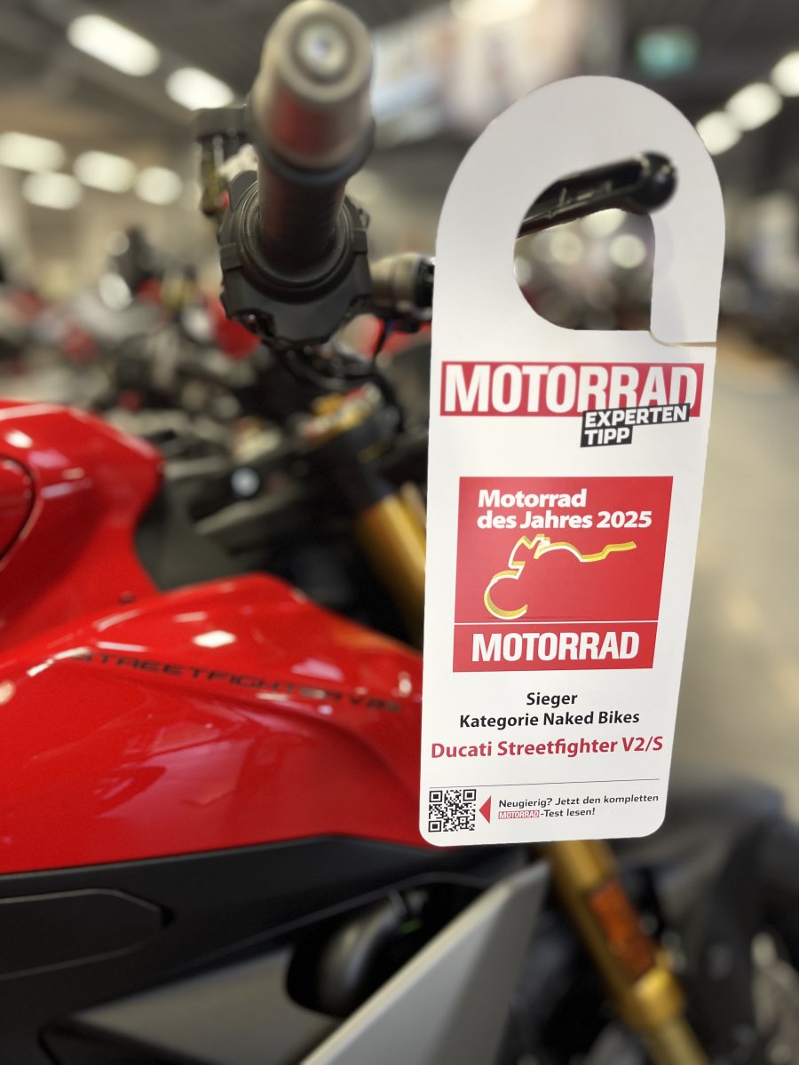 "Mit der neuen Streetfighter V2 S bietet Ducati ein sportliches Naked Bike. Der Motor macht Laune, Chassis und Fahrwerk können sowohl Attacke als auch Alltag, die Elektronik wirkt ausgereift und man kann auch noch einwandfrei auf ihr sitzen. Die beste Streetfighter mit V2, die Ducati bisher gebaut hat."